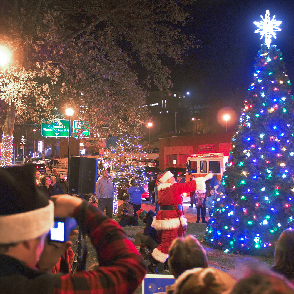 Visit the heart of downtown and take in the city’s new centerpiece tree—kindly donated by Top Notch Landscaping and Supply. Adorned with lights and ornaments created by children of the Ohio Valley, this will be a perfect spot to stop and take a selfie or a family photo while you are out exploring the city of lights!