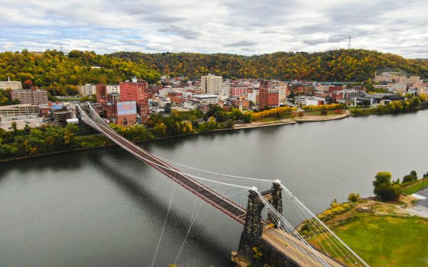 Wander along the historic Wheeling Suspension bridge for perfect leaf peeping opportunities and great views of the Ohio River, Downtown Wheeling, Wheeling Island, and Ohio.