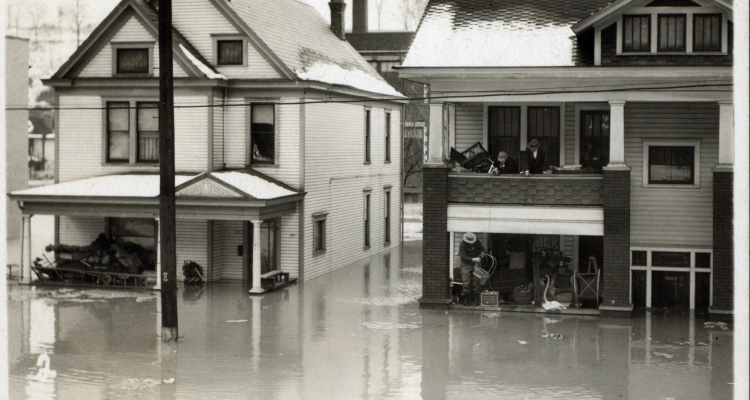 Later that evening, roads were blocked. Water was rising fast. Wayne and his mother were still inside their apartment as the river crept higher and higher, eventually reaching nearly 50 feet. “All the people’s belongings from up the river,” he remembered, “would come floating by.”