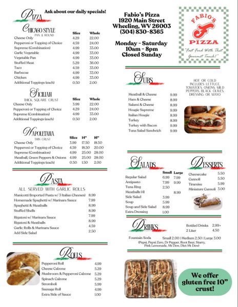 So the next time you’re driving through downtown Wheeling, make sure you take a pit stop and try a slice (or two) at Fabio’s Pizza!