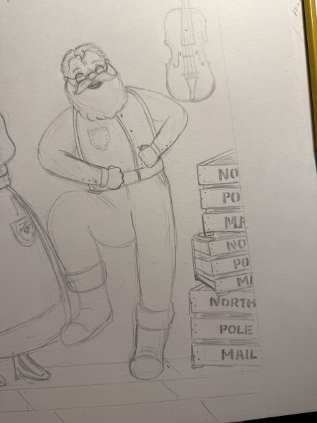 Her favorite illustration, affectionately called “The Jig,” shows Santa dancing while Mrs. Claus laughs—a spontaneous sketch that perfectly captures the story’s playful energy.
