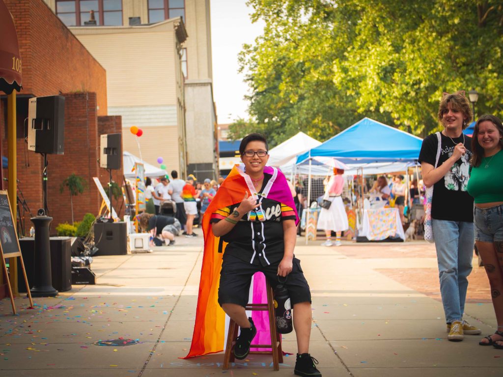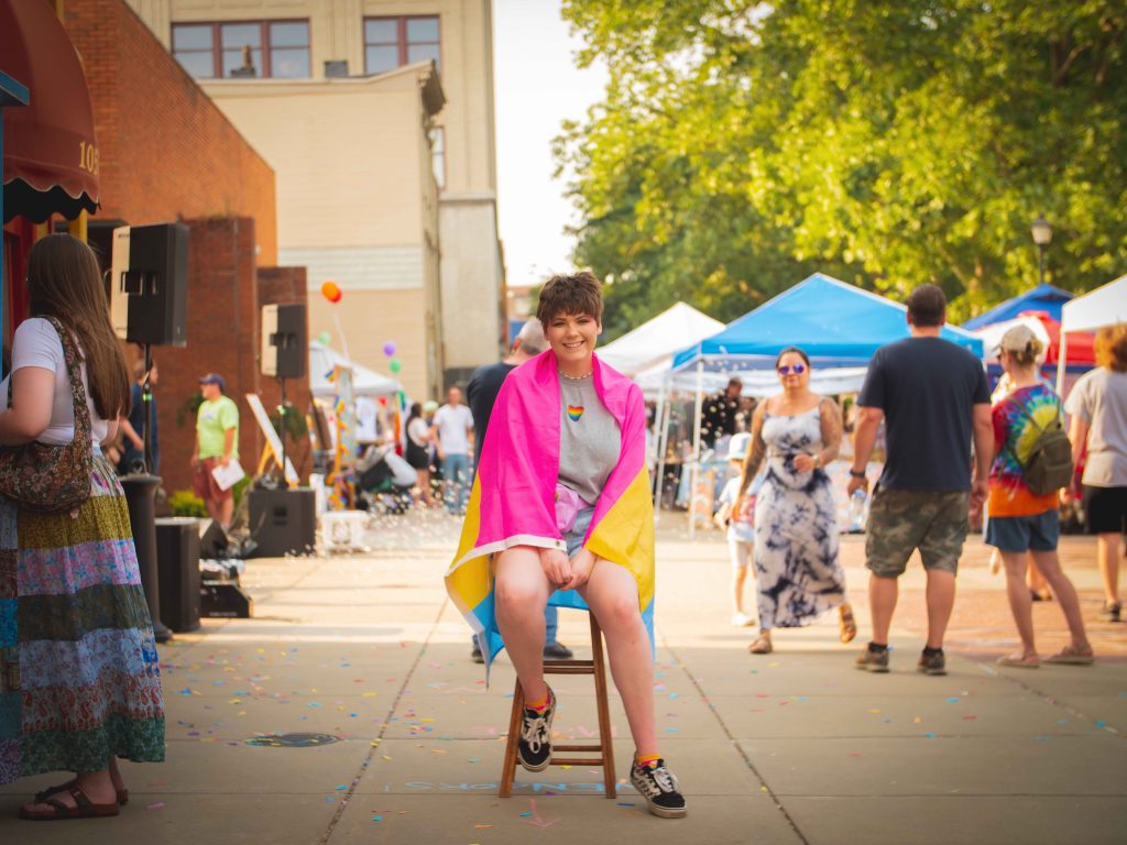 The Wheeling Heritage Media Team attended Pride on the Plaza to help document the day through a “Portraits on the Plaza” photo project. This project prompted attendees to pause amidst the hustle and bustle of the festival to have their portraits taken. The goal was to allow participants to feel seen, capturing a glimpse into the world of each individual while surrounded by the activity of the day’s event. It was wonderful to see people from all walks of life participate in this project. Browse through the gallery below to see the results!